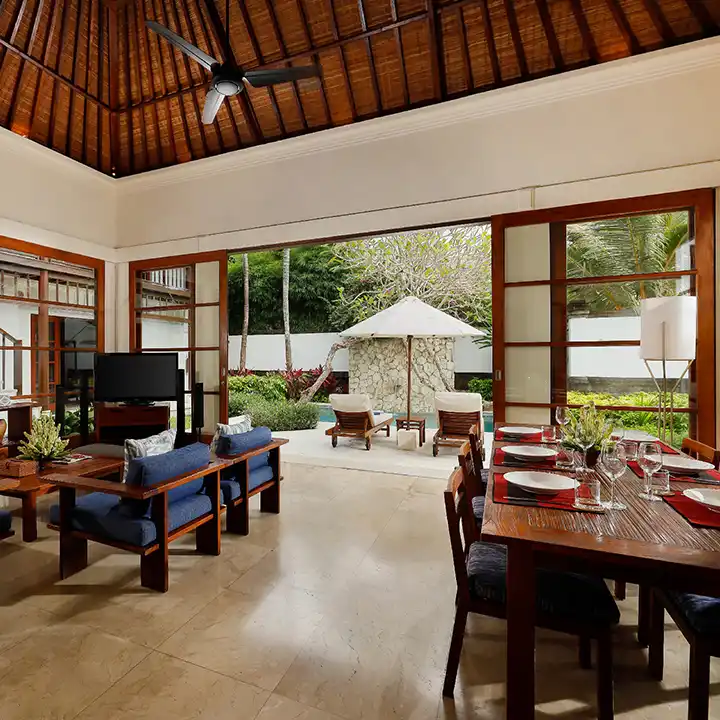 Situated within a luxury villa compound in the greenest part of Jimbaran, Villa Shanti is a three bedroom family pool villa accentuating the harmonious fusion of traditional Balinese with contemporary villa living.